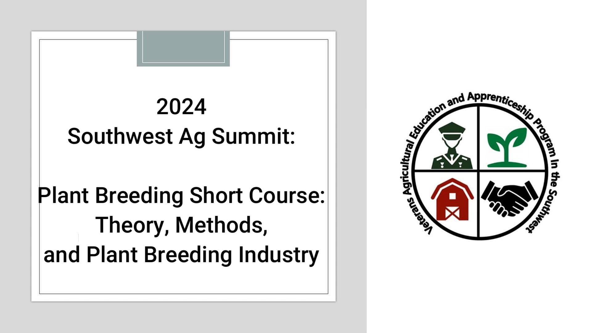 Plant Breeding Short Course: Theory, Methods, and Plant Breeding Industry